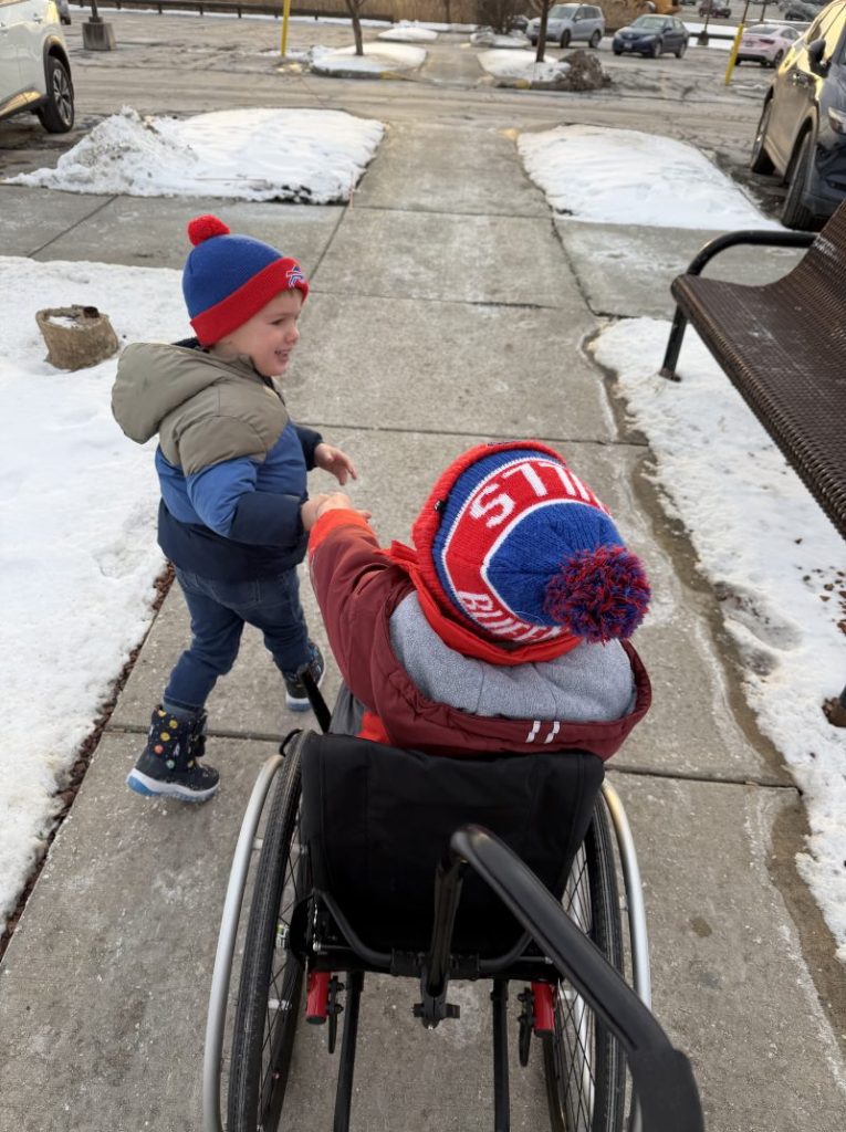 Although Riley knows that Bennett is in a wheelchair, Megan explains, “Riley doesn’t see his brother as ‘different.’ We teach the boys that we are all different and we face different challenges. Some differences are visible and others are not as visible. We teach them that we should always support one another and help each other navigate those challenges.” Watching how Bennett already mentors Riley, and how much Riley looks up to his older brother, never fails to bring a smile to Megan’s face.